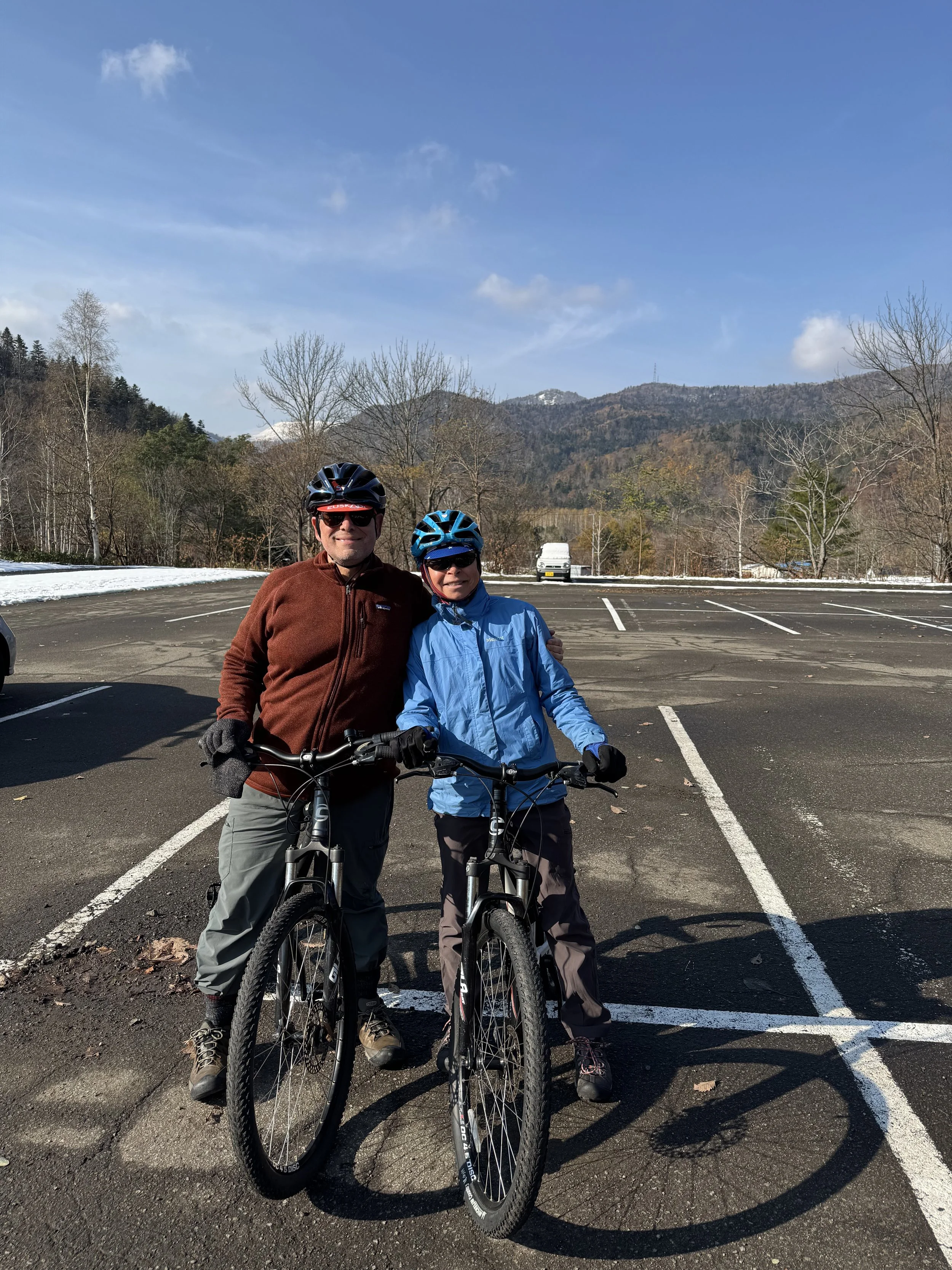 It took us about an hour to get where we were going. As previously mentioned Sapporo is a big city and with the traffic it took time to get to the mountains. It was also pretty far. As we gained a little altitude, there was evidence of a recent snowfall on the ground. We parked in the lot at an Onsen (hot spring bath) and headed out on the bikes.